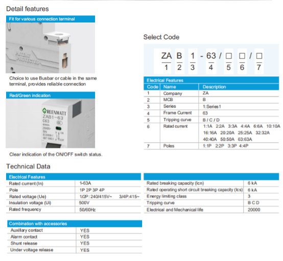 Greenwatt ZAB1-63 AC Mạch thu nhỏ | 63A 400V